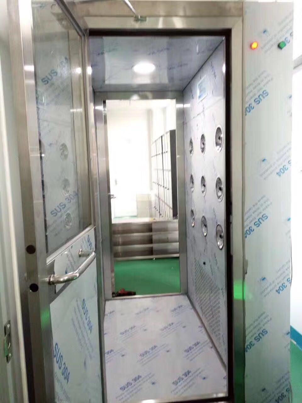 主要用于检测生产车间的人员通道,此次订制的双人双吹风淋室,采用201不锈钢材质,一次性可以容纳4个人,双侧24个喷嘴吹风,出风风速25m/s,保证了吹淋效果。