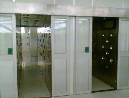 自动门风淋室是人员进入洁净室、无尘车间所必备的净化设备,通用性强,可与所有的洁净室和洁净厂房配套使用,工作人员进入车间时,必须通过此设备,用强劲洁净的空气,由可旋转喷嘴从各个方向喷射至人身上,有效而迅速清除去附着在衣服上的灰尘、头发、发屑等杂物,它可以减少人进出洁净室所带来的污染问题。