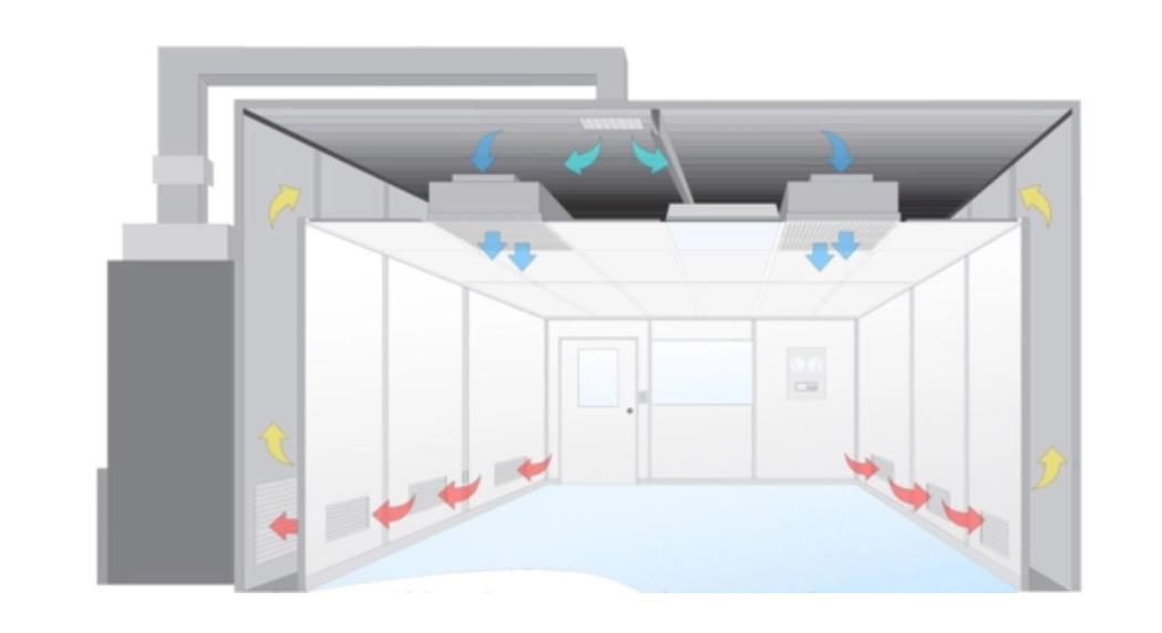 这就因为它是一个骤变流和非均匀流。因此这种状况下不仅有流层之间因紊流活动而发生的掺混,并且还有全室范围内的大的回流、旋涡所发生的掺混。单向流洁净室单向流洁净室一般有两种类型,即水平流和垂直流。在水平流系统中,气流是从一面墙流向另一面墙。