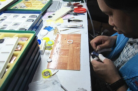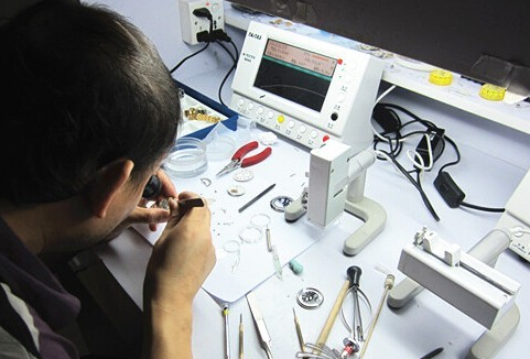 这里就是成表组装车间了。工作人员将几百个零部件各就各位”安置“好,一只手表就算完工了。一块完整的手表由表头、表带(表扣)组成。 其中表头的零部件包括:机芯、表壳、底盖、镜面、字面(常说的表盘)、指针、把的(调时间的,也叫按的)。