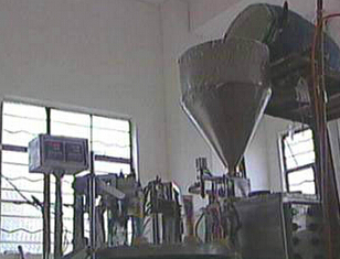 这家企业生产的牙膏主要是供往广东、香港市场。此时工人正在生产线上装配牙膏。