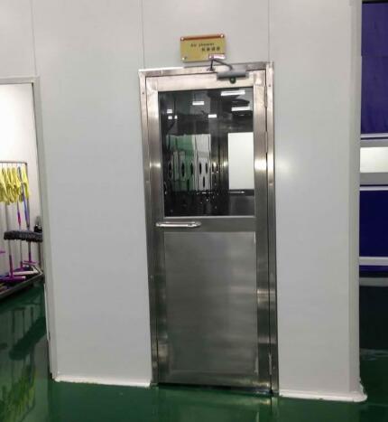 风淋室材质:全不锈钢(SUS304)材质,板材厚度不小于1.2mm,上部带3C认证钢化玻璃视窗,下部为不锈钢平面处理,无凹凸棱角,减少死角;三道3MM厚度不锈钢铰链,保障门应结实耐用,门与门框结合平整、牢固、美观,密封性能良好,门开启灵活;