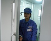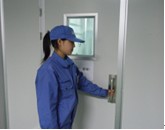 第三步、入不锈钢风淋室,关闭外门,内门锁自动锁上
