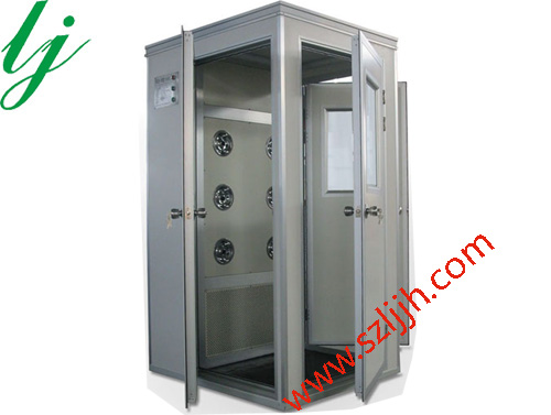 风淋室是人员进出洁净室所必须的通道,并同时起到闸室密闭洁净室的作用,是进行人员净化和防止室外空气污染洁净区的有效设备。 为了减少由于人员进出所带来的大量尘埃粒子,经高效过滤器过滤后的洁净气流由可旋转喷嘴从各个方向喷射至人身上,有效而迅速清除尘埃粒子,清除后的尘埃粒子再由初、高效过滤器过滤后重新循环到风淋区域内