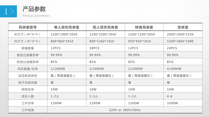 风淋室内的空气由风机的作用经初效过滤器进入静压箱,经高效过滤器过滤后,洁净空气从风淋室 的喷嘴高速喷出,喷嘴角度可调节,可有效地吹除人或货物表面附着的尘埃,垂下的尘埃再回到初 效过滤器,如此内部循环可以达到风淋除尘的目的。