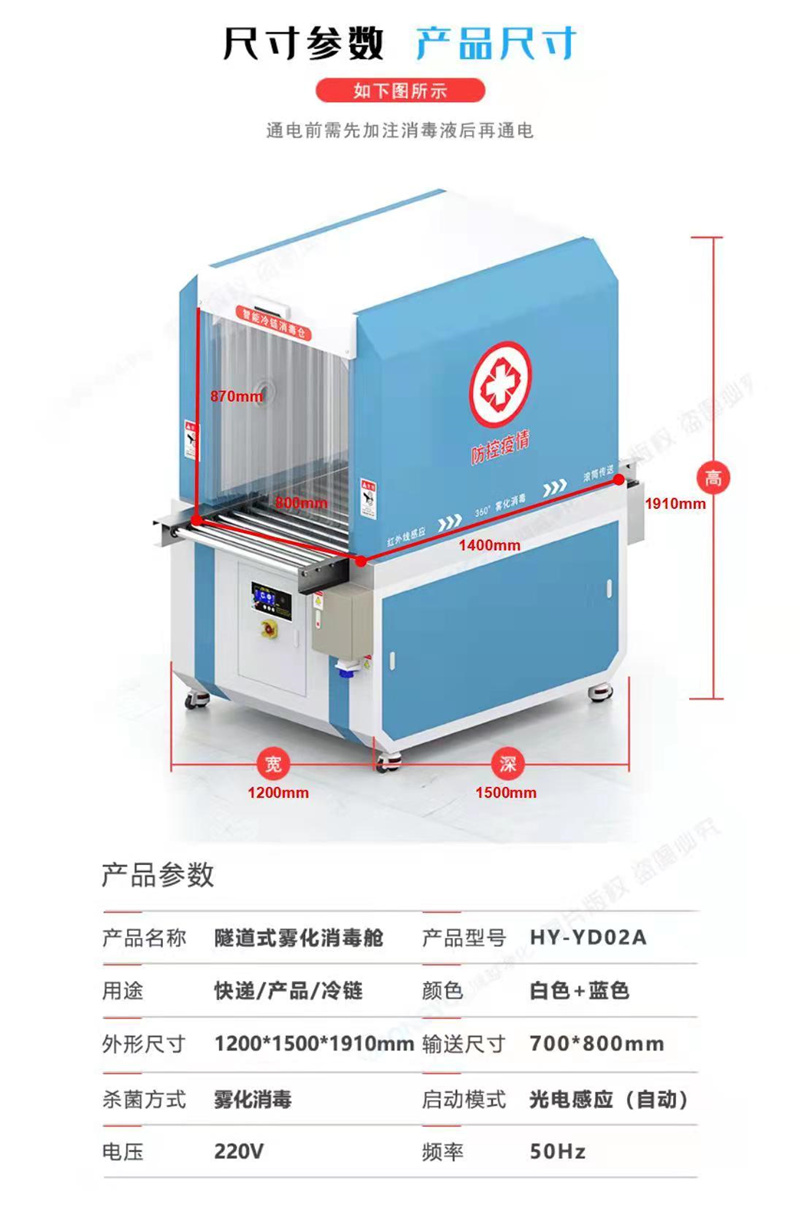 智能移动式冷链消毒柜 XDG-YD02A 参数说明: