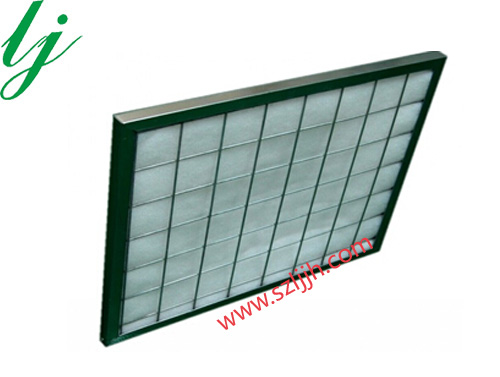 1.采用初效无纺布平铺于框架内,滤料双面金属网固定。